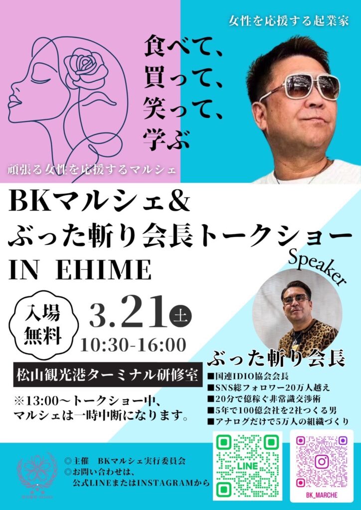 BKマルシェ&トークショーは、「女性が自分らしく生きること」「一歩踏み出すきっかけをつくること」を目的とした、BKマルシェ実行委員会が運営するイベントです。