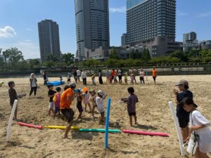 保護者同士はもちろんのこと、大学生や社会人といった親以外の地域の大人たちが、自然な形で子どもたちを見守り、お世話をする光景が数多く見られました。子どもたちが、そうした親以外の大人を頼り、甘えることで双方に信頼関係が芽生えます。大人たちが見守る中で、初めましての子ども同士もすぐに打ち解け合い、笑顔で遊ぶ姿が印象的でした。